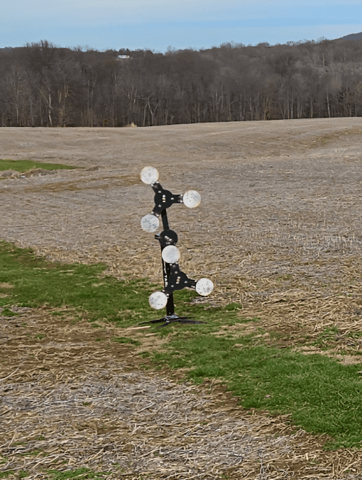 This is our most challenging moving target yet! With three independently rotating axes, it’s impossible to predict the path of these targets. The 8″ plates are held in place with the same spring retention system used on our proven Texas Star platform. When shot, the plates are released from the retention pocket and fall to the ground. The change in weight distribution causes the crossbar and plates to rotate. The precision machined shaft and pillow bearings maximize the speed and change of direction with each successful shot on the plates.