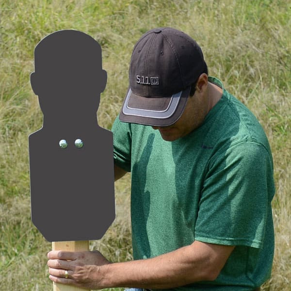 • 8″ Wide x 20″ Tall Human Silhouette x 1/4″ thick AR500 plate is rated for all non-magnum handguns